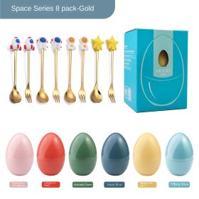 New Creative Tableware Mind Egg Light and Luxury Christmas Cartoon Doll Dessert Spoon Fork Stirring Spoon Wedding Gift (Specifications: Astronaut spoon fork 8 pieces, colour: Tiffany Blue Egg)