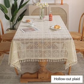 American style pastoral crochet table cloth woven hollowed out table cloth tassel cover table cloth beige hollowed out cloth table mat (colour: Beige - hollow square, size: 140*220cm)