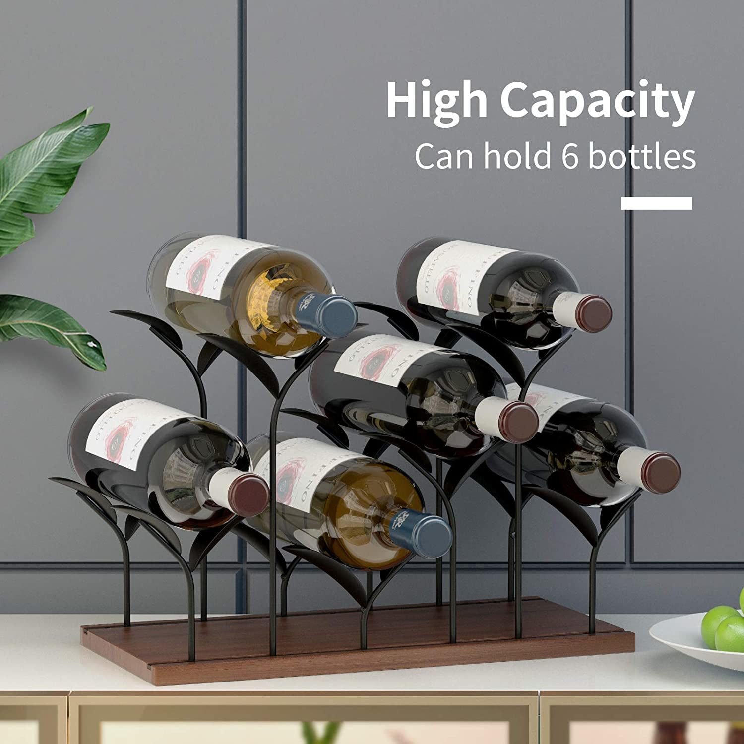 [UNIQUE DESIGN]This leaf-shaped bottle organizer of modern and elegant design, its wooden base adds some rustic charm to it. It perfectly combines art and functions. Also a best gift for lovers, friends and wine collectors.