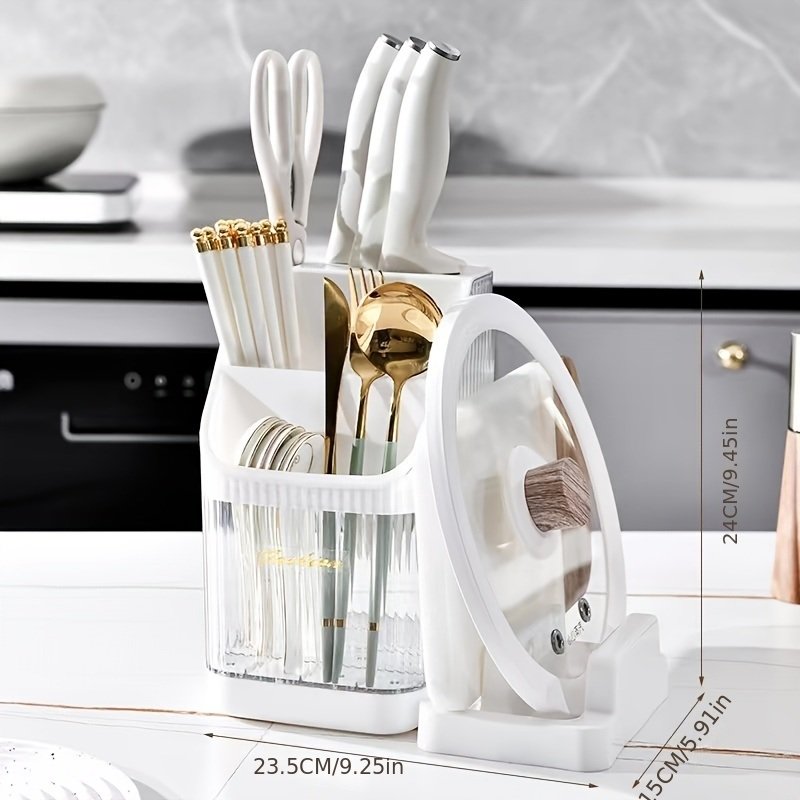 Home > 1pc Multipurpose Cutlery Knife Spoon Fork Chopsticks Storage Box Pot Lid Shelver PET Clear Color Cutlery Water Filter Holder Kitchen Cutlery Holder